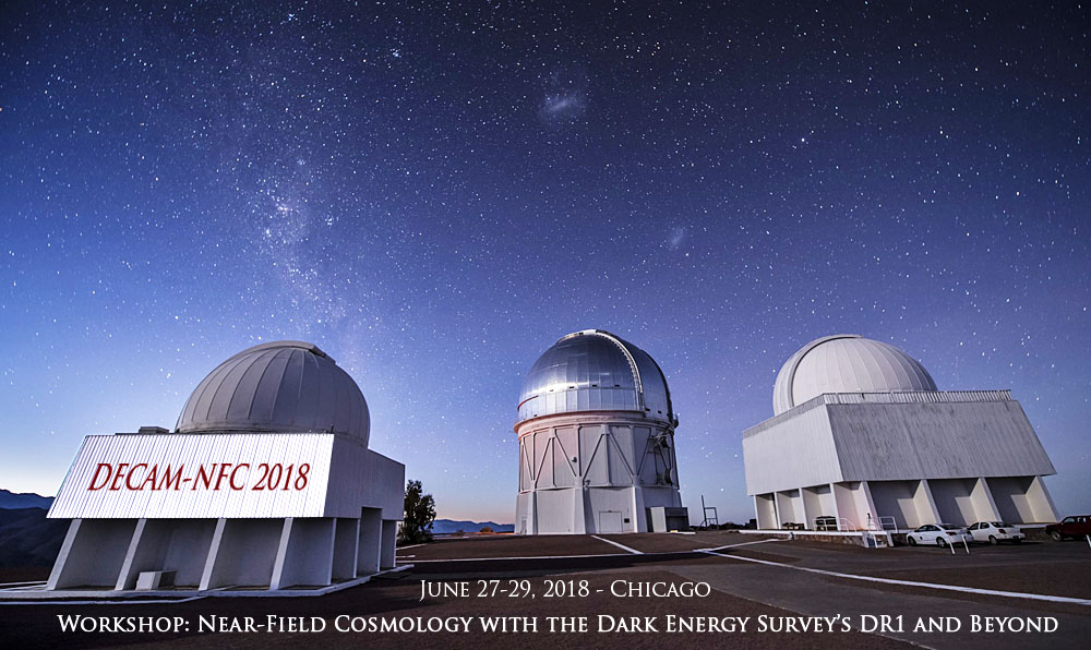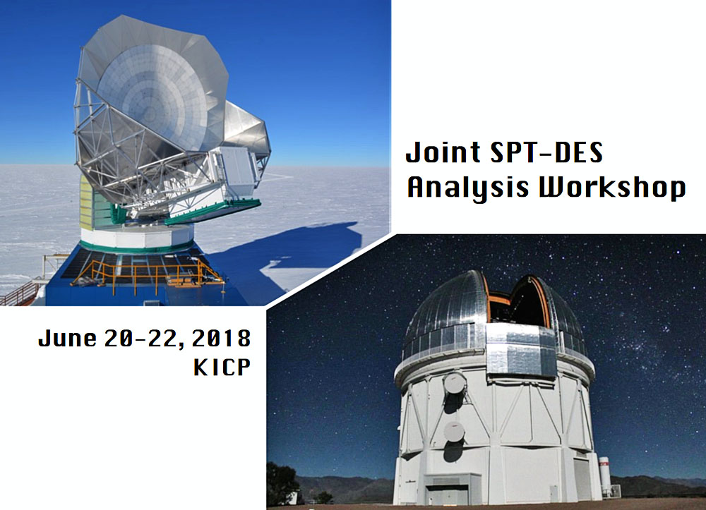 2018 Workshop: Towards Dark Matter Discovery Webpage The Kavli Institute of Cosmological Physics (KICP) at the University of Chicago is hosting the "Towards Dark Matter Discovery" workshop, which will be held from 11th to 13th April 2018 in the Eckhardt Research Center (ERC) on the University of Chicago campus. The workshop will explore new directions on the path toward discovering the nature of dark matter. The invited speakers are encouraged to share their expertise in the fields of primordial black holes, thermal relic dark matter, nonthermal relic dark matter, ultralight dark matter, superheavy dark matter, kinda-chubby dark matter, new strategies for direct detection, newer strategies for direct detection, avant-garde strategies for direct detection, and axions. During the three day workshop, we will host approximately 20 talks of 30 minutes each with generous time remaining for discussion. Visitors to the University of Chicago are invited to spend the entire week at the university.Learn more >> Workshop: Joint SPT-DES Analysis Webpage The Kavli Institute of Cosmological Physics (KICP) at the University of Chicago is hosting the "SPTxDES Joint Analysis" workshop, which will be held from 20th to 22nd June 2018 in the Eckhardt Research Center (ERC) on the University of Chicago campus. This workshop focuses on the science at the intersection of two leading cosmology experiments---the Dark Energy Survey (DES) and the South Pole Telescope (SPT) - with the goal of optimal extraction of cosmological constraints from these two surveys. The workshop would serve as both a forum for discussions on current analyses as well as an incubator for future ideas. The meeting will cover two main themes: galaxy clusters and wide-field science. While these topics cover a broad spectrum, we will target the workshop such that it accelerates joint work on these key areas of synergy between the two collaborations.Learn more >> Workshop: Near-Field Cosmology with the Dark Energy Survey's DR1 and Beyond Webpage Stars in our Milky Way and galaxies in our Local Group contain the fossils and clues on stellar evolution and supernovae, the formation and evolution of star clusters and dwarf galaxies, and the formation of large spiral galaxies. Rapid progress in this field -- usually called Galactic Archeology -- was enabled by large-area imaging and spectroscopic surveys of old stellar components of the Milky Way and dwarf galaxies, together with simulations of chemical and dynamical evolution. The field of Near-Field Cosmology extends the scope of these studies to probe the formation and evolution of galaxies and the nature of dark matter. The Dark Energy Survey (DES) is releasing its DR1, with catalogs and images from the first three years of DES operations early in 2018, including 400M objects (100M stellar sources in grizY band to r of 24th magnitude at 10 sigma) over 5000 square degrees mostly in the Southern Galactic cap. This survey is about 2 magnitudes fainter than SDSS at the same S/N. In addition to DES, many other DECam community surveys, such as DECaLS, DECaPS, SMASH, MagLiteS, BLISS, etc, have already had or will soon have the public data release. Kavli Institute for Cosmological Physics (KICP) at the University of Chicago will host a 3-day workshop on June 27-29 to explore uses of the DES DR1 for near field cosmology studies in conjunction with other DECam public data. Furthermore, the workshop will explore possible synergies with other spectroscopic surveys as well as Gaia DR2. The 3-day workshop will include presentations and discussion on the first two days and a hack day on the last day. Talks on ideas or science results related to DES/DECam data, or synergies with other programs are encouraged. Abstracts can be submitted at registration. On the hack day, we will hack on DES DR1 data and associated data sets (like Gaia DR2) in a collaborative format. Specific hack topics can be submitted at registration. Topics in this workshop includes: